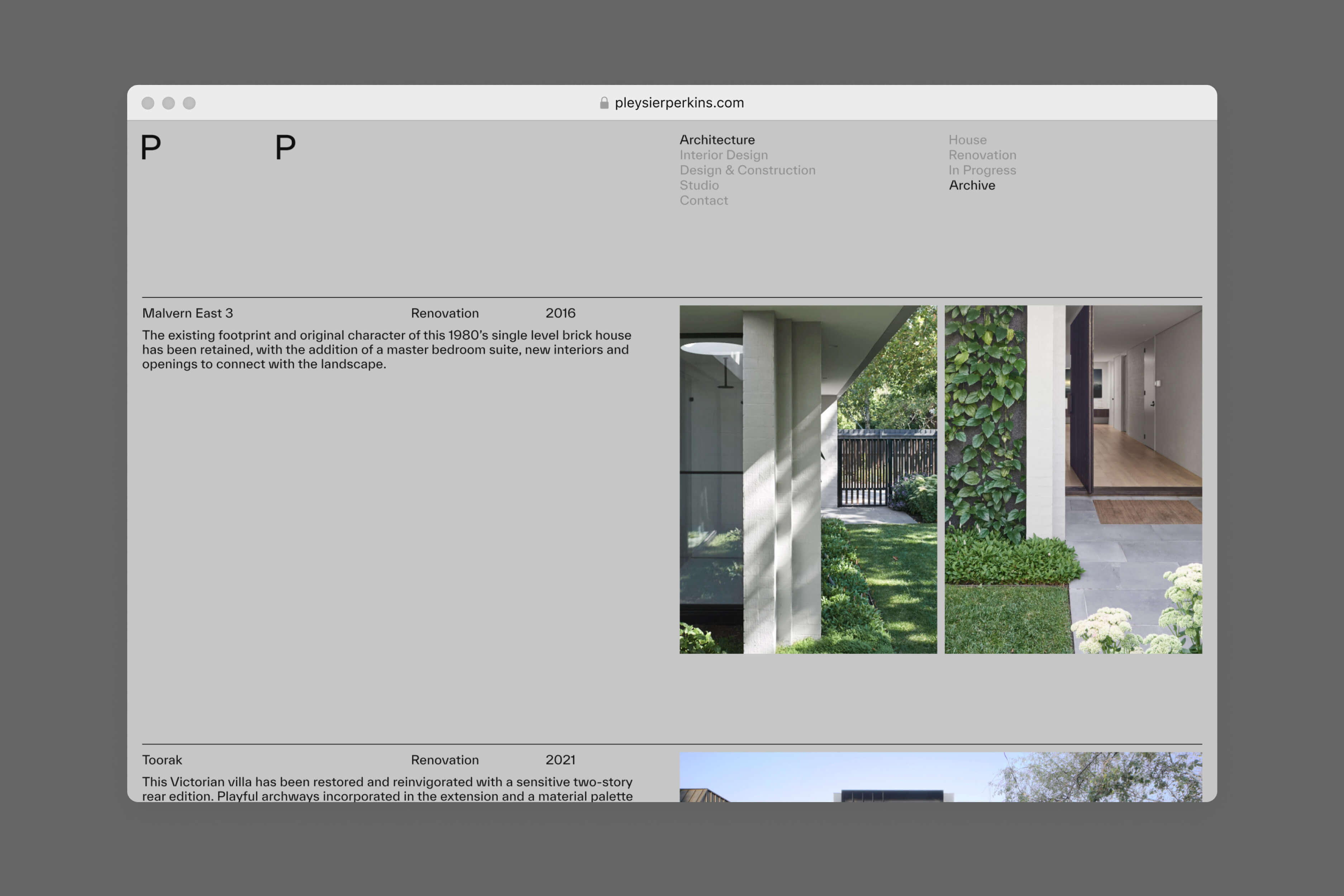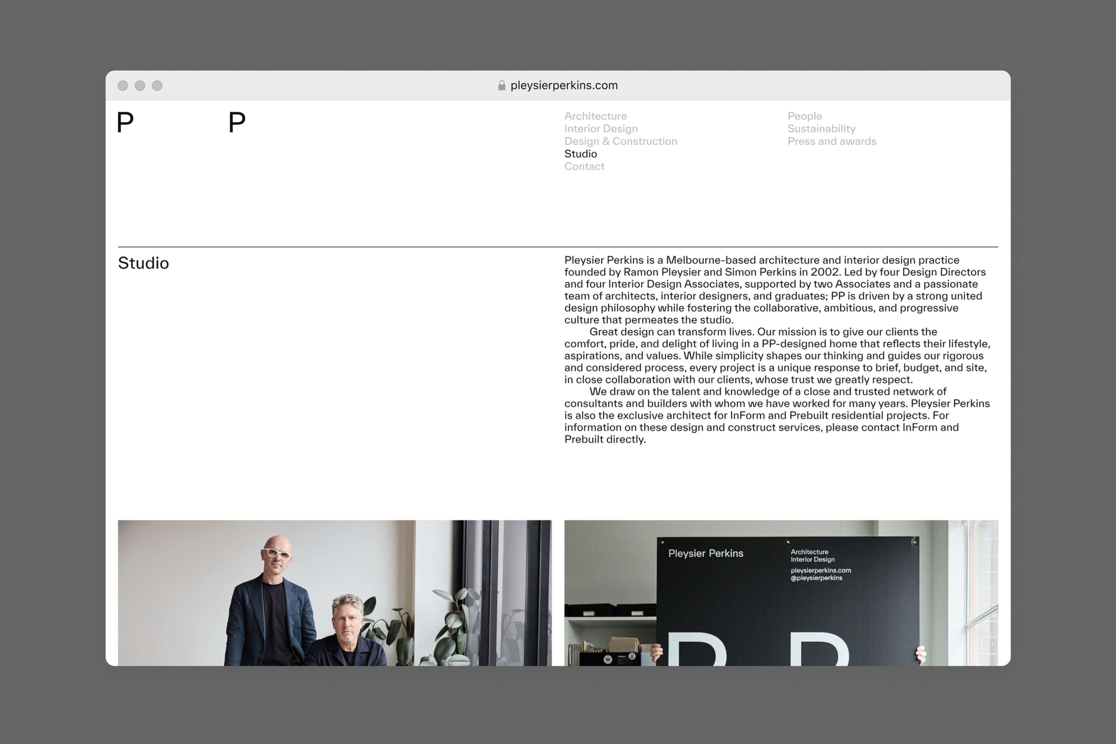 Pleysier Perkins is a Melbourne-based architecture and interior design firm founded by Ramon Pleysier and Simon Perkins. To commemorate 20 years in practice, Mucho was appointed to redesign their website, offering an in-depth exploration of their extensive portfolio.